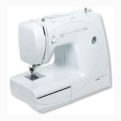 Bernina Record symaskin i vit färg. Mekanisk modell med flera inställningar för stygnlängd och -bredd samt reglage på framsidan. Maskinen har trådrack på ovansidan och inbyggd arbetsyta med måttskala på basen. Passar för grundläggande sömnadsarbeten som lagning, uppläggning och enklare sömnadsprojekt i hemmet.