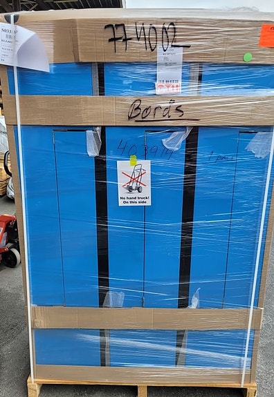 Komplett med skenor, anslag och skruv.