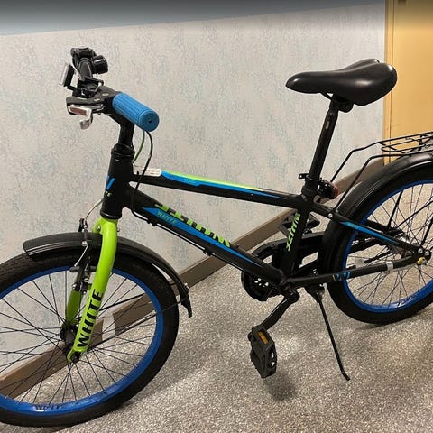 Peak barncykel med 20" hjul i svart färg. Cykeln har framgaffel med fjädring, fotbroms bak och handbroms fram. Utrustad med kedjeskydd och reflexer. Passar barn som behöver en cykel med 20-tums hjul för vardagscykling och lek.