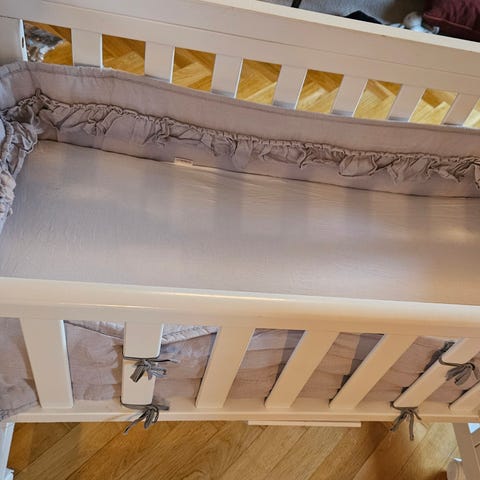 Bedside crib från Troll. Inklusive madrass, spjälskydd och täcke.