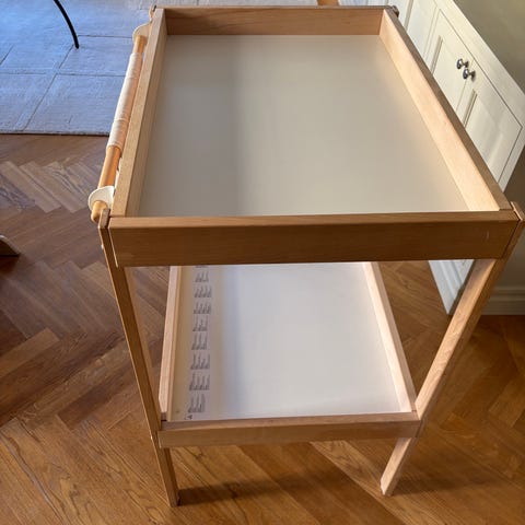 Den fick en skada vid flytt men står stabilt, madrass ingår.