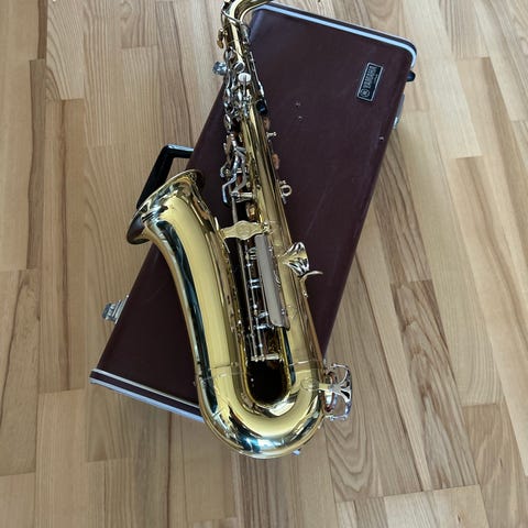 Altsaxofon Yamaha 275 i guldmässing med medföljande hårt, fodrat etui.