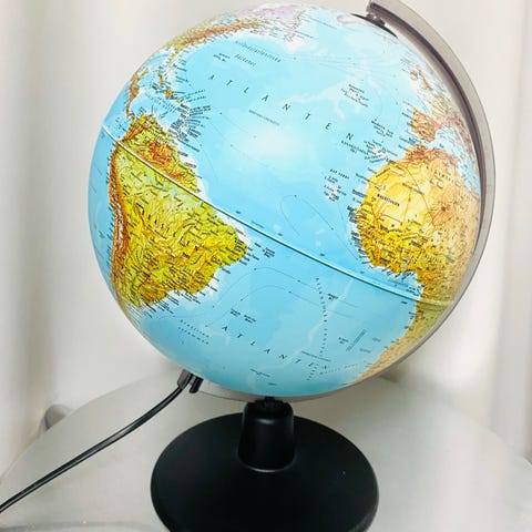 En svensk retro jordglob , "Kombi globen", fysisk-politisk karta