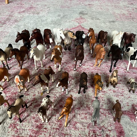 Schleich hästfigurer leksakshästar. Samling med flera hästfigurer i olika färger och modeller. Figurerna är detaljerade och avsedda som leksaker eller samlarfigurer. Passar för lek, dekoration eller som komplement till andra Schleich-leksaker och hästrelaterade miljöer.