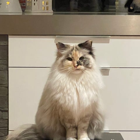 Cinderella är en lugn katt som just nu bor tillsammans med oss som har små barn och hund och en han katt. Innan Cinderella kom till oss bodde hon i Danmark där hon fick söta kattungar. Familjen fick inte lov att behålla henne av sin hyresvärd så vi tog hand om henne, dock behöver hon ett lugnare hem, helst utan hund eller andra djur. Hon är som bekvämast när hunden inte är hemma. Därför behöver vi hitta ett nytt hem till henne. Vi upplever att hon är stressad och väldigt rädd och väljer därför att följa efter min dotter överallt och sova hos henne, min dotter är dock päls allergiker och måste begränsa sitt umgänge med djuren för att må bra, vilket gör det ännu svårare då Cinderella behöver sitt lugn och min dotter behöver avstånd ibland.