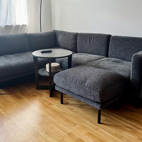 Hörnsoffa Bellus Nowa Diego grå 4 år gammal i bra skick 298x165