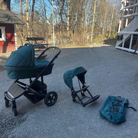 Hamax Outback Duo med plats för två barn. Skid samt insats för baby (se bild 3) medföljer.