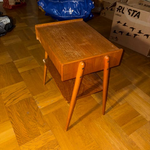 Fint nattduksbord i teak.