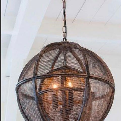 Lampa från Ryd’ens i glas och metall. Öppen glaskupa med 3 st lamphållare i. Höjd på glaskupan 30 cm, längd på upphängning 70 cm, totalt 1 m. Upphängningen går att justera längden på. Har använts i ett inglasat uterum.