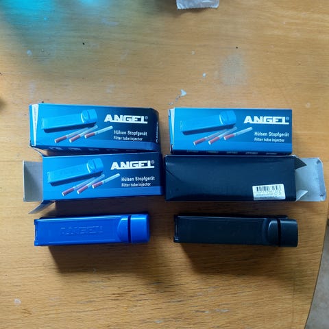 Samling med fem cigaretständare i olika utföranden. Tändarna är tillverkade i metall med olika ytbehandlingar och mönster, bland annat räfflade och släta ytor. Färgerna varierar mellan silver, guld, svart och röd. Modellerna är rektangulära och avsedda för cigaretter. Passar för den som behöver flera tändare eller är intresserad av olika modeller i metallutförande.