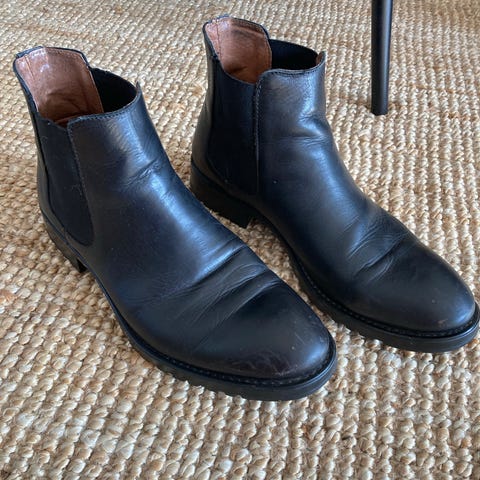 Vagabond stövlar i storlek 45. Kortare modell med resår på sidorna för enklare av- och påtagning. Tillverkade i svart skinn med slät ovandel och låg klack. Yttersula i gummi. Passar som vardagssko eller för mer uppklädda tillfällen.