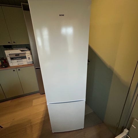 Cylinda kylskåp med frysfack i vitt utförande. Skåpet har överdel med kyl och underdel med separat frys. Invändigt finns flera hyllplan, dörrhyllor samt grönsakslådor i kyldelen. Frysdelen har utdragslådor för förvaring. Passar som fristående kyl/frys i kök eller förråd där kombinerad kyl- och frysförvaring önskas.