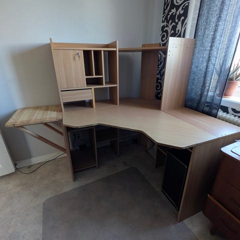 5 st. Hörnskrivbord och hurtsar i träfanér