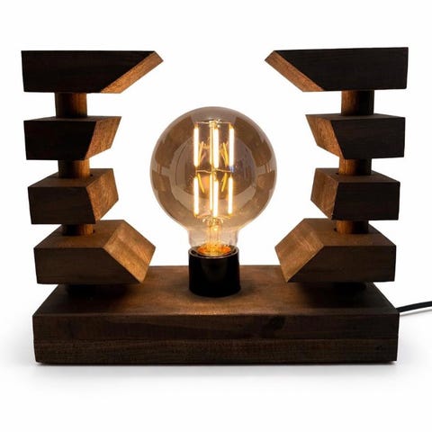 Handgjord bordslampa i trä med E27-sockel och europeisk (EU) kontakt med strömbrytare på sladden.