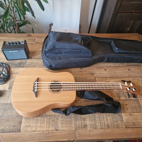 Jack & Danny akustisk gitarr i brun träfinish. Mindre kroppsstorlek som kan passa både yngre spelare och vuxna som vill ha ett mer kompakt instrument. Gitarren har sex strängar, trästall och klassiskt runt ljudhål med etikett på insidan. Lämplig för övning, hemmabruk och enklare ackordspel. Är typ en ukkelele