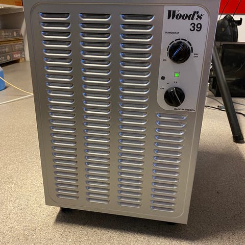 Byggavfuktare kondensavfuktare Malmbergs/Byggstöm modell DY-65L. Kapacitet 65L vatten/dygn vid 30°C och 80% RH. Kan ställas på ett specifikt intervall inom 26-90% RH eller köras med kontinuerlig drift. Kondensvatten pumpas automatiskt bort via slang med max lyfthöjd 4,5m. Finns på Kungsgärdet i Uppsala
