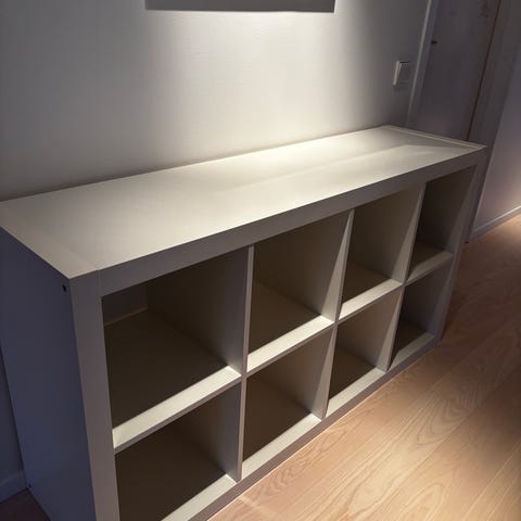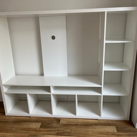 Stilren vit hylla/TV-möbel med gott om förvaring säljes.