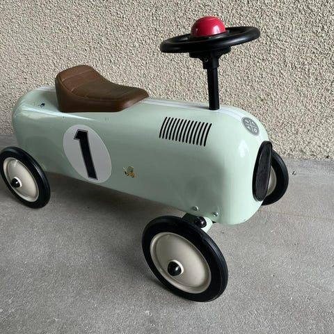 Gåbil med utseende av Ferrari. Skjutfunktion. Kan höjdjusteras och även fällas ihop. Sitsöverdrag som kan tas bort och tvättas.