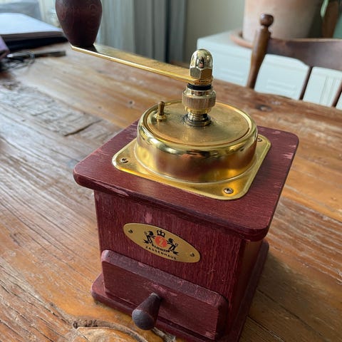 Hittade en fin husqvarna kaffekvarn i stugan. Aldrig använt från oss