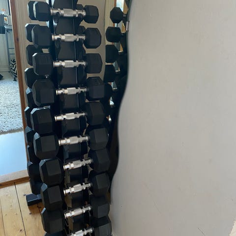 2 st äldre gedigna tunga hantlar med vikter