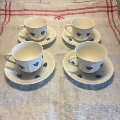 Fyra stycken koppar med fat och assietter i mycket bra skick.