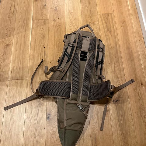 Ryggsäcken har en kapacitet på 25L och två bälgliknande fickor på sidorna med vardera 3 liter volym.