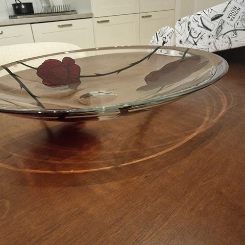 Kosta Boda skål i glas med rosa och vita mönster. Designer Anna Ehrner. Tempera Pink Swirl.