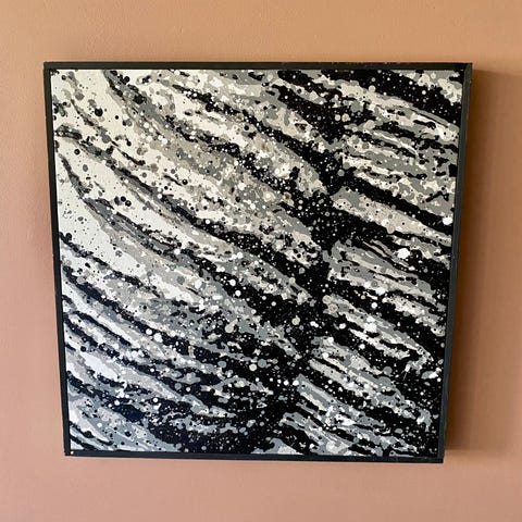 Målning i svartvitt som föreställer ett landskap med molnig himmel och träd i siluett. Motivet är målat på duk och ger ett kontrastfullt, monokromt intryck. Passar som väggdekoration i till exempel vardagsrum, sovrum eller kontor. Representerad på Nationalmuseet. Mått: 1.60x1.22cm.