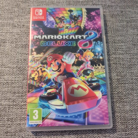 ink bärväska med Mario Kart-motiv samt spelet Mario Kart 8 Deluxe i fysisk utgåva.