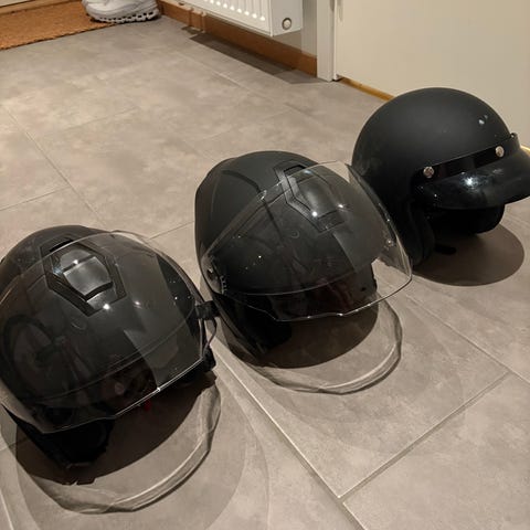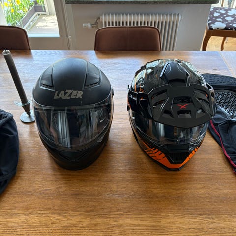 Den andra hjälmen (med blått visir) är i bättre skick och känns fräschare.