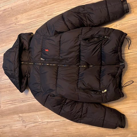 Säljer en tunn dunjacka i camouflage-mönster från Ralph Lauren, storlek S. Perfekt som vår- och höstjacka eller som extra lager under rock.