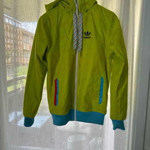 Adidas retro jacka för herr i storlek XL. Material i polyester med meshfoder på insidan. Modellen har huva med dragsko, hel dragkedja framtill samt resår i ärmslut och nederkant. Lämplig som lättare ytterjacka eller vindjacka. Knappt använd, i princip nyskick.