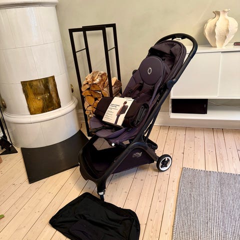 Inköpt för 4-5 år sedan från jollyroom, använd på en resa pga den följde riktlinjerna om vagn för att få ta med som handbagage. Har en stor sufflet, bälte, fotbroms, går att göra till fullt liggläge.
