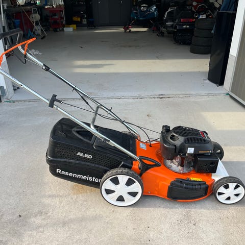 Bensindriven gräsklippare med framhjulsdrivning. Använd vid 4 tillfällen om ca 3h vardera.
