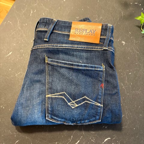 Snygga svarta jeans från Replay, nästan helt oanvända och väldigt gott skick. Storlek 33/34. Kvitto finns