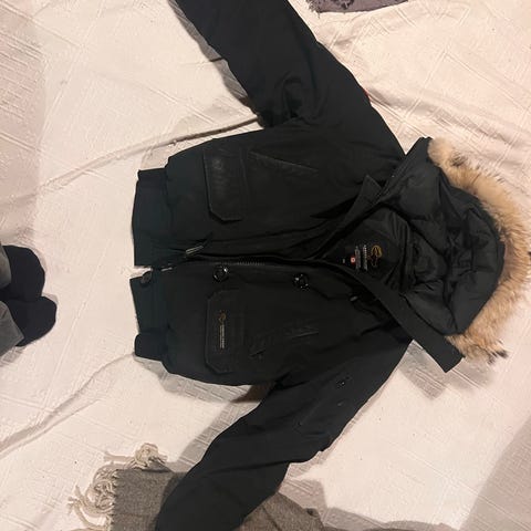 Canada Goose dunjacka för dam i storlek M. Jackan är svart och fodrad med dun. Modellen har huva med avtagbar pälskant, hög krage och dragkedja framtill med knappslå. Ytterfickor framtill och innerficka ger plats för förvaring. Passar som varm ytterjacka under kalla dagar.