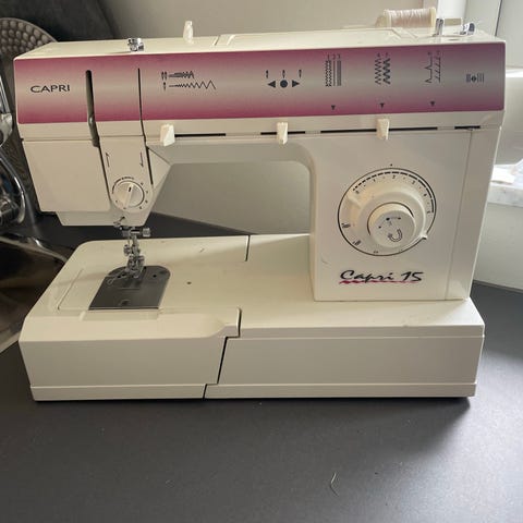 Lämplig för olika typer av sömnadsarbeten som uppläggning, lagning och enklare klädsömnad.ny servad fungerar klockrent med alla tillbehör