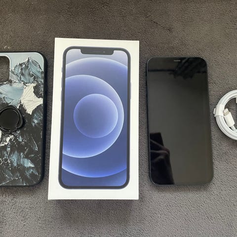 Vit iPhone 12 Mini i helt nyskick. Fyra mobilfodral. Skärmskydd och mobilskal från första dagen.