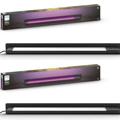 Philips Hue utomhuslampa för väggmontering i svart utförande. Lampan är avsedd för användning utomhus och kan ge färgat och vitt ljus. Den monteras på vägg och kan integreras i Philips Hue-systemet för styrning via app eller kompatibla tillbehör. Lämplig för belysning av fasad, entré eller uteplats.