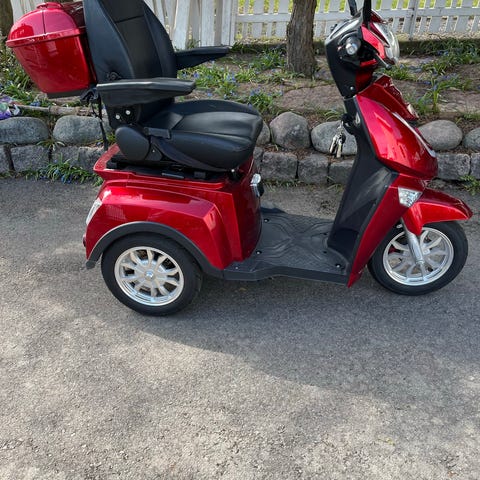 Permobil i jättebra skick som startar varje gång och går hur bra som helst. Tar sig fram bokstavligen ÖVERALLT. För inomhus bruk men funkar även hur bra som helst att köra ute. Väldigt lätt att ta isär och sätta ihop. Stora batterier så går extra långt. Man får med laddare och en pinne för att sänka stolen. Armstöden är justerbara och hur enkla som helst att av montera. De går även att fälla upp så att man enkelt kan gå in och ur. Kom med bud
