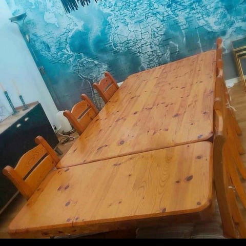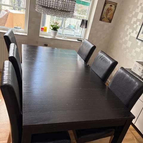 Tik bord med sex stolar