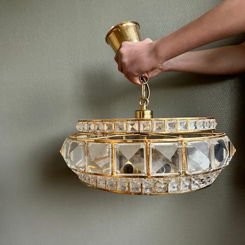 Retro prydnad med prismor, en prisma saknas. Höjd 18 cm, bredd 15 cm.