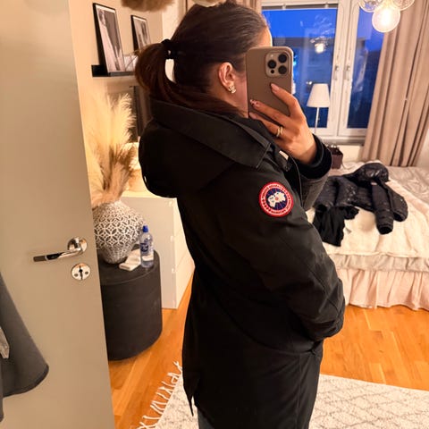 Säljer en varm och stilren Canada Goose vinterjacka i svart. Jackan är sparsamt använd och i mycket fint skick. Den har en stor, lyxig päls på huvan som ger både extra värme och en klassisk Canada Goose-look.
