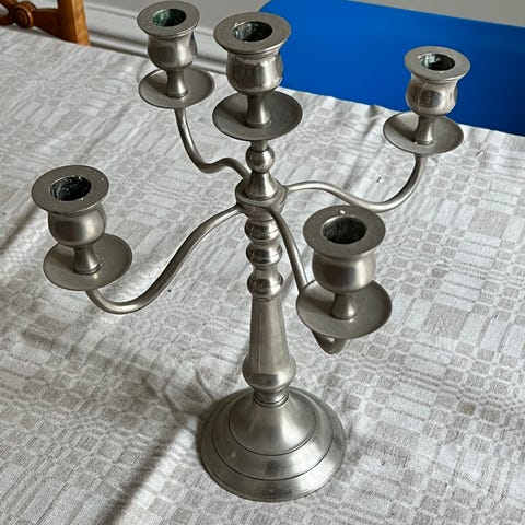 Två vackra ljusstakar i svensk tenn