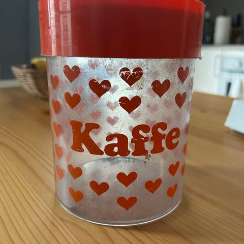 Retro termoskanna i orange och brun färg. Perfekt för att hålla drycker varma eller kalla. Kannan har en klassisk design som passar bra i de flesta kök eller för utflykter.Några små repor i övrigt i perfekt skick