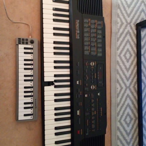 Yamaha keyboard elpiano med fullstora tangenter. Instrumentet har inbyggda ljud och rytmer samt kontrollpanel i mitten för val av olika. Nätadapter ingår för strömförsörjning via vägguttag. Lämpligt för barn som vill spela synthesizer.
