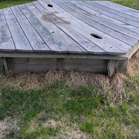 Stor, hemmasnickrad sandlåda. Mått 300 x 180 cm. Höjd ca 28 cm.