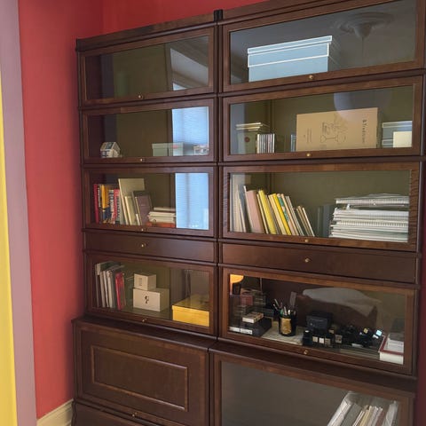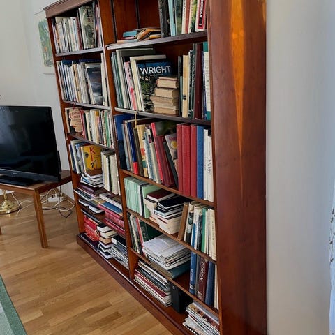 Fint skick som nytt. 10 sektioner totalt som går att bygga som man vill. Översta sektionen är också delbar. Köpta på Jeppssons möbler i Hammenhög för 30 år sedan för strax över 100000.