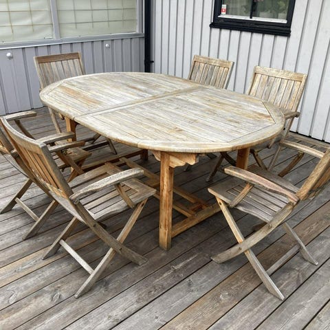 Någon färgskiftning pga sol finns. Annars hela och fina.