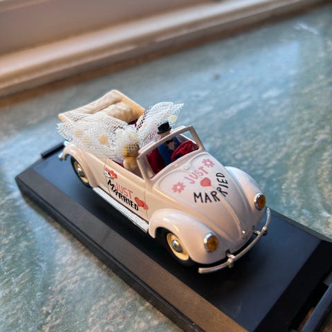 Volkswagen modellbil pickup. Plåt. Sannolikt Bandai Japan. Längd 15 cm. Bra allmänintryck. Saknar främre fälgarna. Tröga bakhjul. Bruksslitage. Underbar patina. Pris enligt ovan eller förslag.